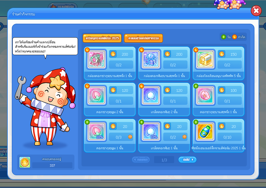 × อัพเดต ร้านค้ากิจกรรม ×
